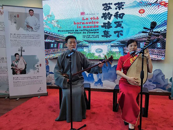 The Paris event featured activities including tea tasting, demonstrations of tea-making techniques and tea art, displays of Jiangsu's intangible cultural heritages, calligraphy and traditional music performances.