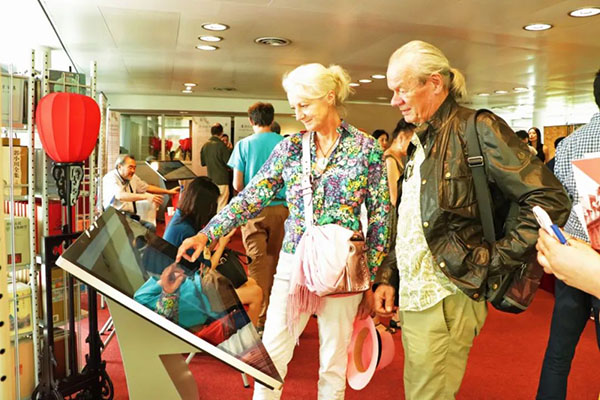 Visitors try a 360-degree rotating interface of a virtual exhibition showcasing all aspects of Jiangsu. [Photo/Chinaculture.org]
