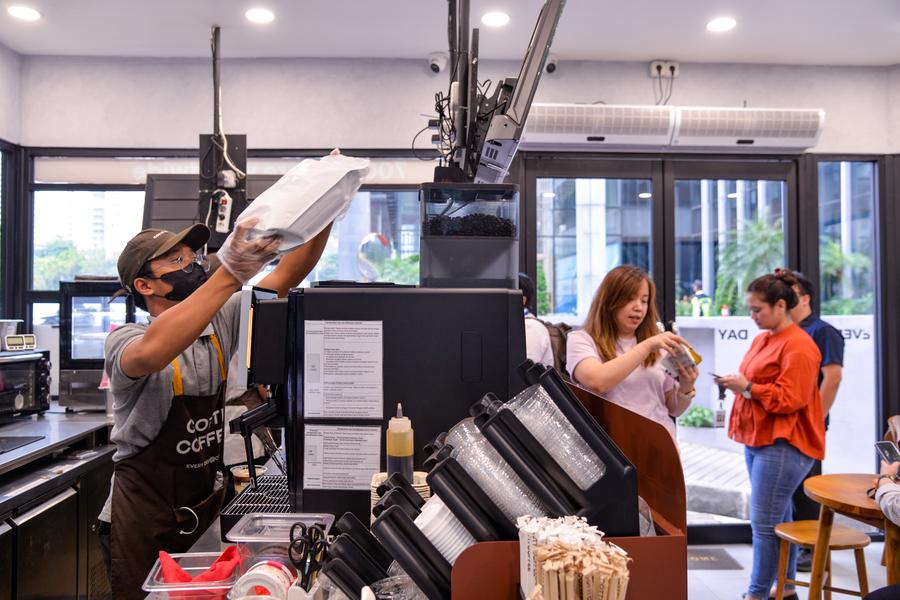 A staff member works at a Cotti Coffee store in Jakarta, Indonesia, Nov. 21, 2024. (Xinhua/Xu Qin)